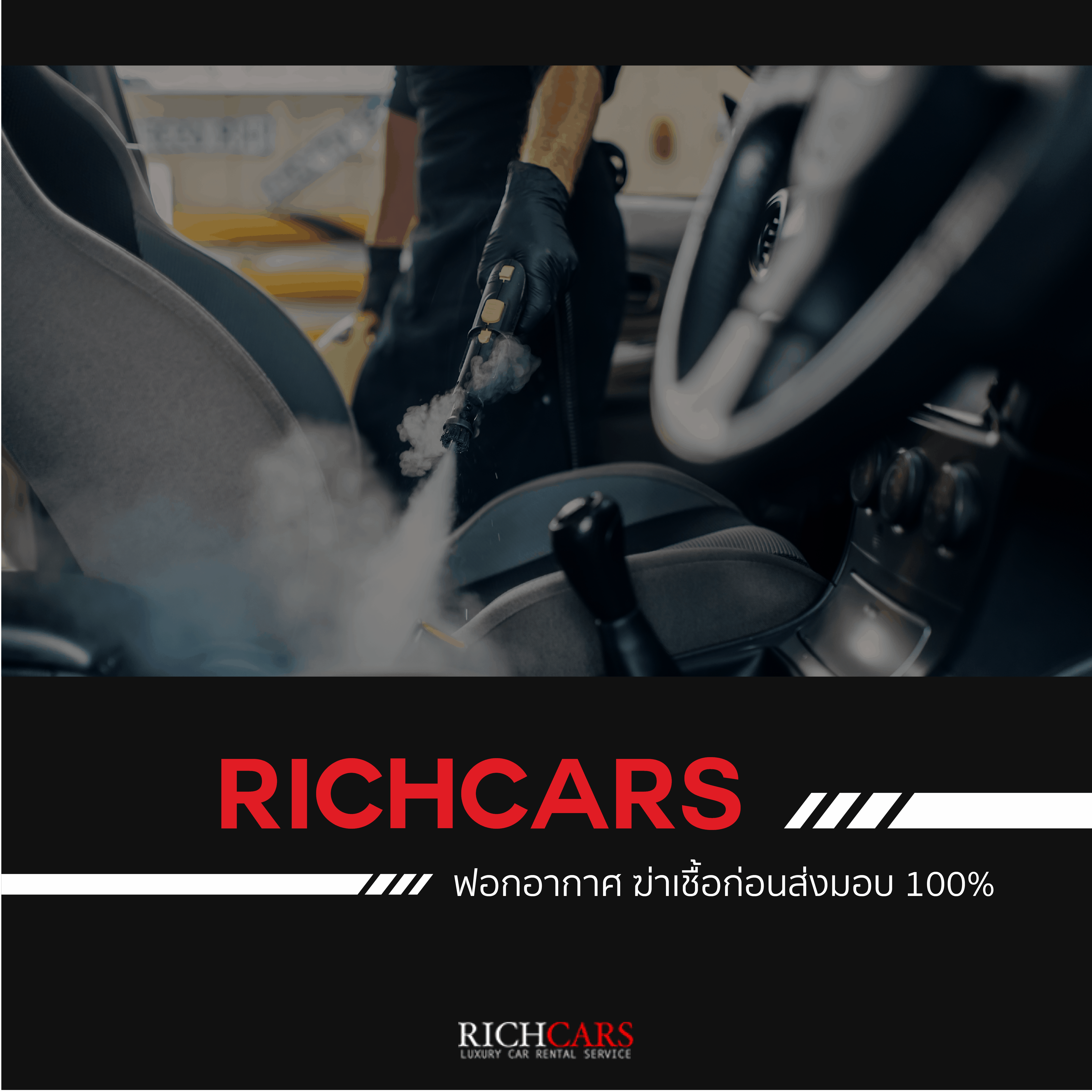 งั้นลองมาเช่ารถกับ Richcar ดีกว่า นอกจากจะช่วยลดความเสี่ยงแล้ว ยังได้ขับรถหรูกันแบบสบายใจอีกด้วยนะ ที่สำคัญ! เช่ารถกับ Richcar เค้ามีการฟอกอากาศฆ่าเชื้อรถทุกคันก่อนส่งมอบด้วย เริ่ดสุดๆ
